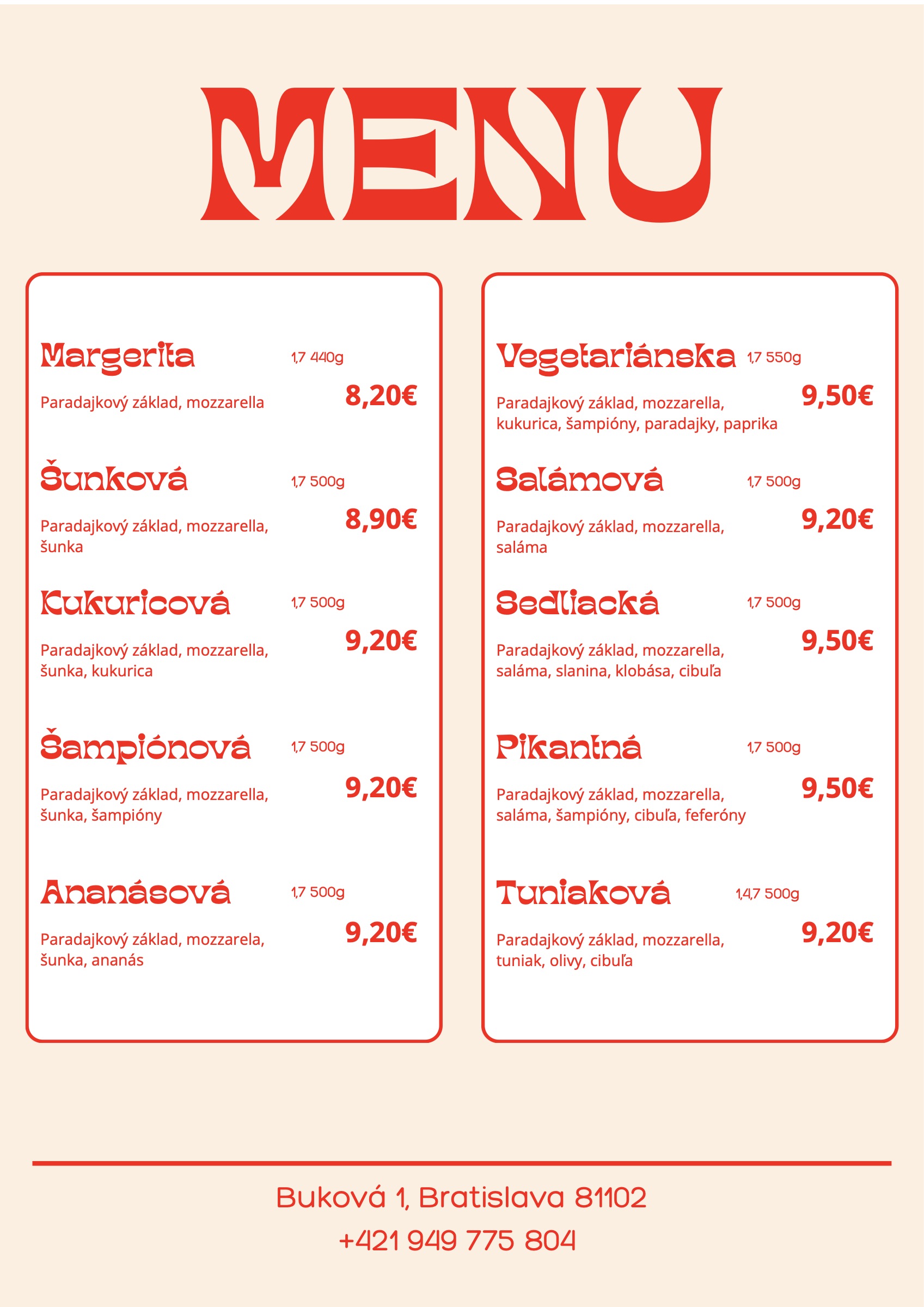 Príďte si po vôňu čerstvej pizze. Na mieste nájdete útulný priestor s výhľadom na miesto, kde vzniká každá pizza.